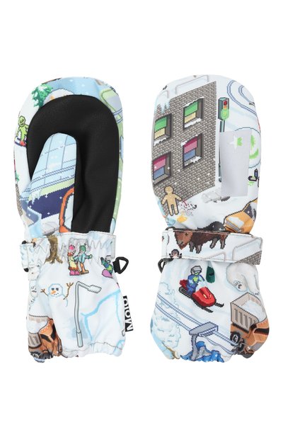 Варежки Igor с флисовым подкладом и наполнителем Tensulate сшили из мембранной ткани на основе переработанного полиэстера. Аксессуар с принтом Snowy Mountains дополнили ремешком велкро на запястье.