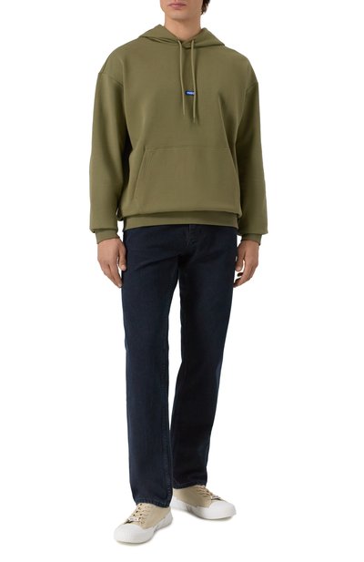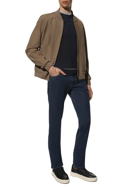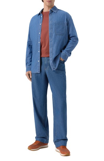 Прямые джинсы Straight 324 с боковыми карманами украсили брендированной нашивкой на поясе сзади. Для изготовления модели использовали деним плотностью 13,5 Oz, сотканный из органического хлопка.