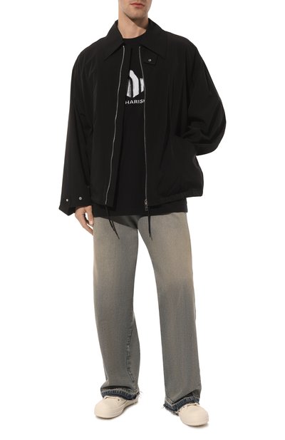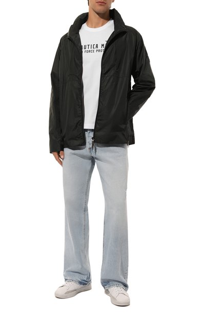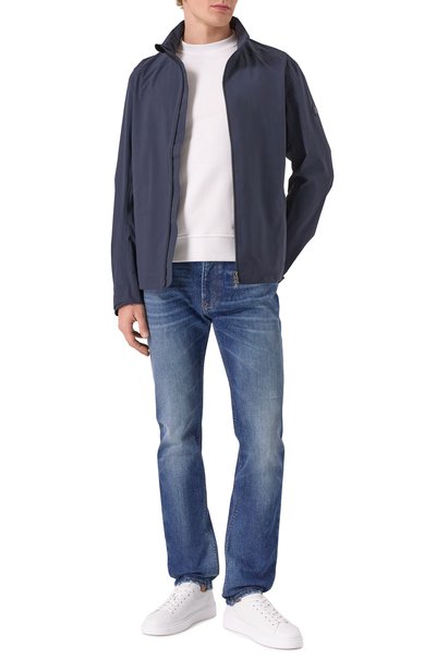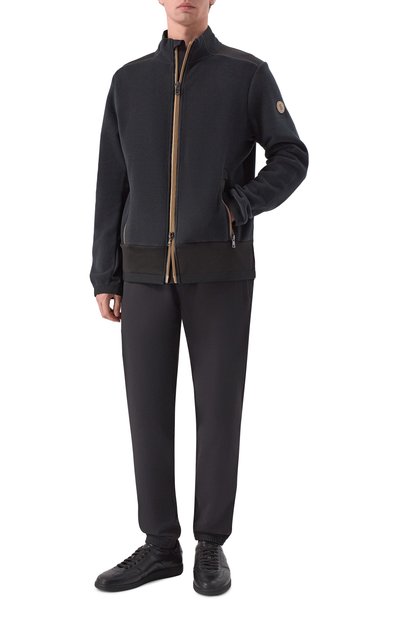 Для пошива куртки с высоким воротником-стойкой использовали материал на основе шерсти овцы и ангорского кролика. Модель с двумя врезными карманами застегивается встречной молнией, отделанной матовой кожей.
