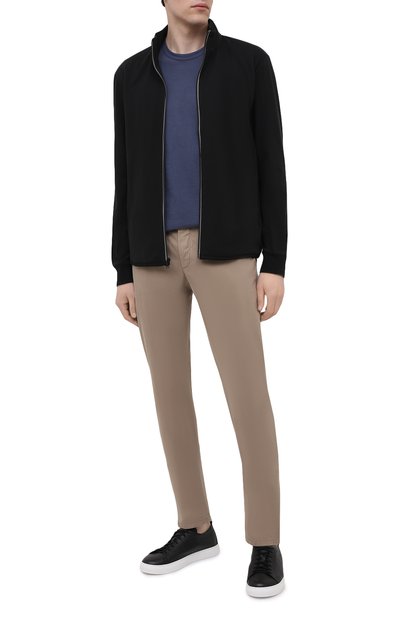 Лонгслив в круглой горловиной в рубчик выполнили из микса шелка и хлопка. Модель комфортно носить и как самостоятельный верх, и в качестве промежуточного слоя.