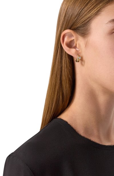 Серьги с застежкой-пусетой изготовили из стали с золотистым финишем. В три звена разных форм и размеров поместили прозрачные кубические цирконии.