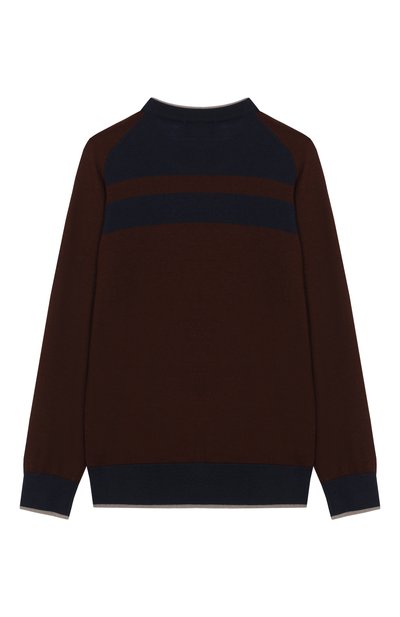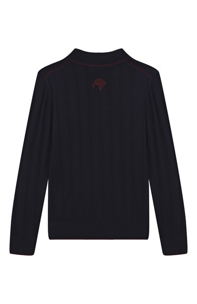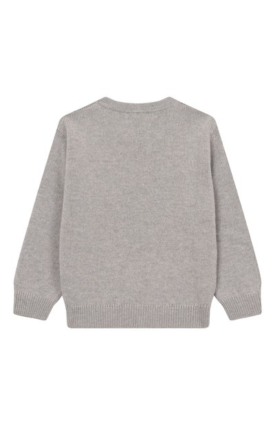 Свитер с круглой горловиной связали из хлопковой пряжи с добавлением кашемира. Спереди модель декорирована логотипом, вышитым нитью в тон.