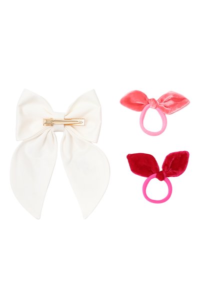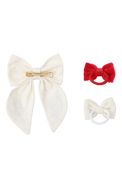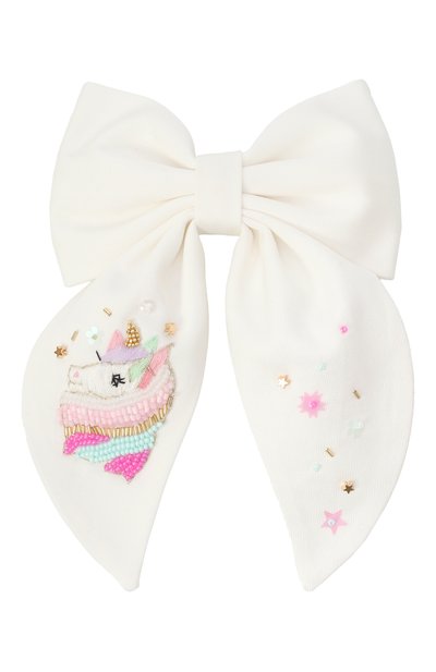 Заколку с металлическим зубчатым зажимом украсили двойным текстильным бантом. Аксессуар, расшитый бусинами и цветочными аппликациями, дополнили подвесками в виде ягод клубники.