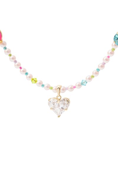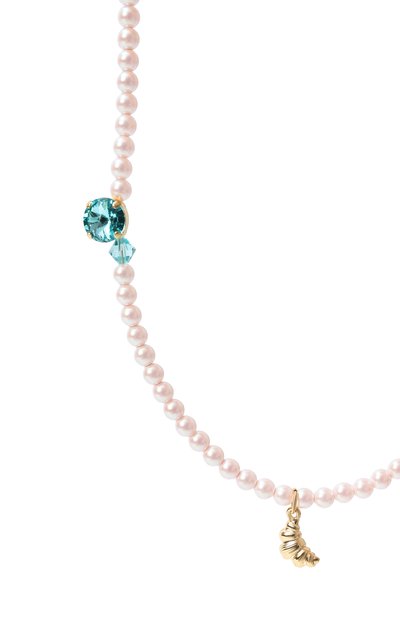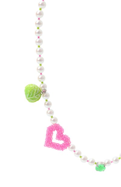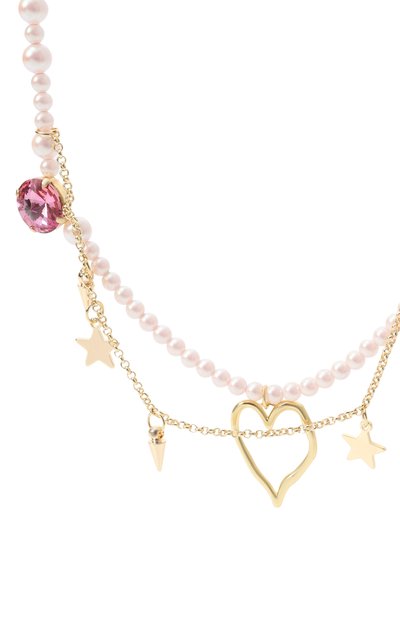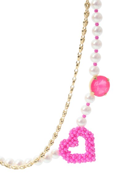 Колье с удлиняющей цепочкой и застежкой-карабином собрали вручную из граненых стеклянных бусин. Аксессуар дополнили крупным бантом с кристаллом.