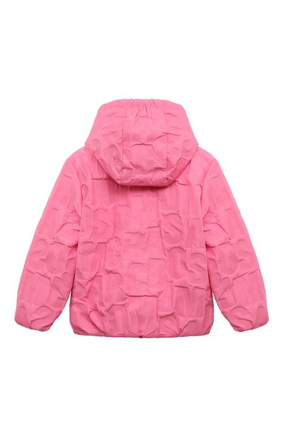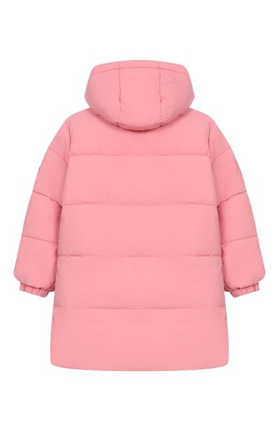 Утепленную куртку из полиэстера дополнили контрастными трикотажными манжетами и молнией с защитой от защемления. Рукава украсили патчем с логотипом марки и брендированными лентами, повторив декор на капюшоне. По бокам предусмотрели врезные карманы с листочками.