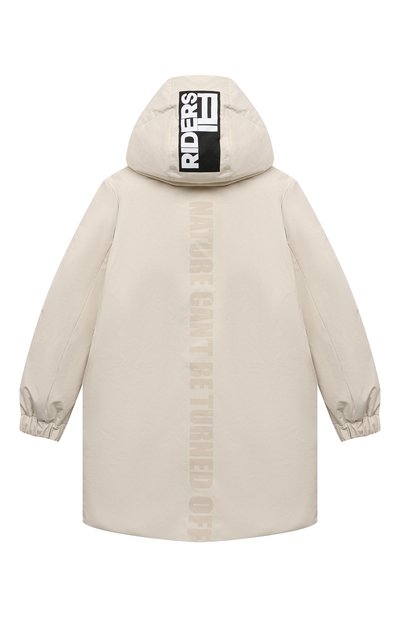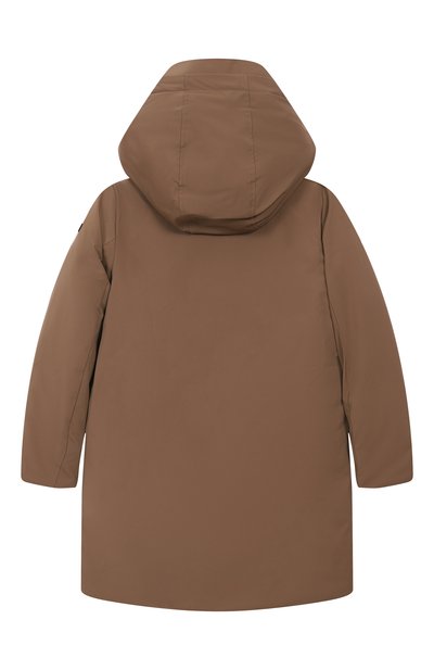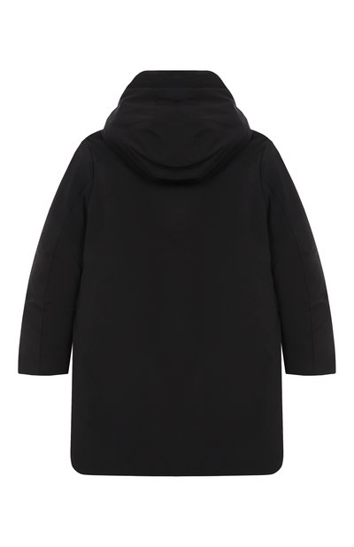 Парку на синтетическом утеплителе выполнили из полиэстера. Модель с эластичными манжетами и капюшоном дополнили накладными боковыми карманами с клапанами и нагрудными с молниями.