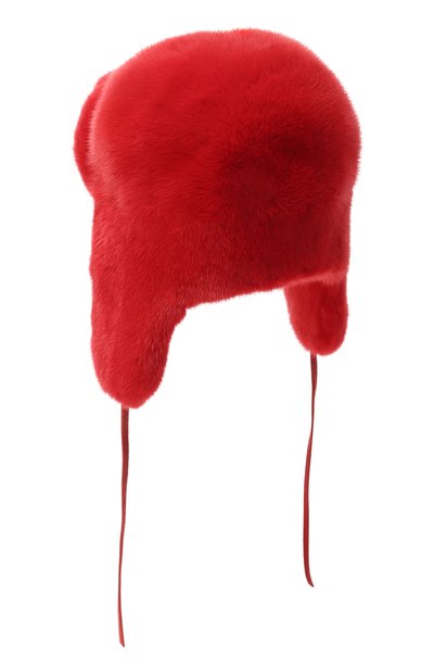 Ушанку «Френки» выполнили из окрашенного коротковорсового меха норки. Модель с формованной тульей дополнили кожаными шнурками на наушниках.