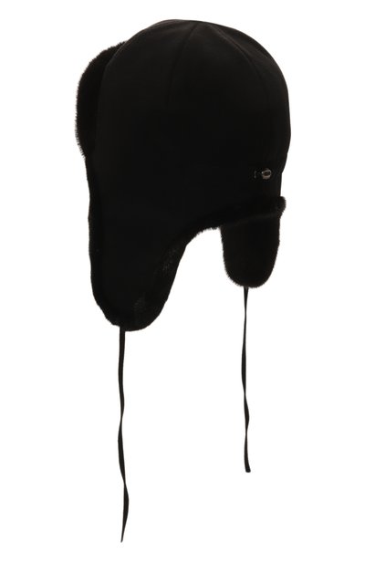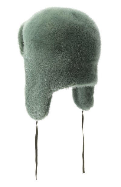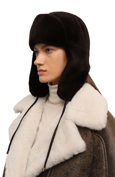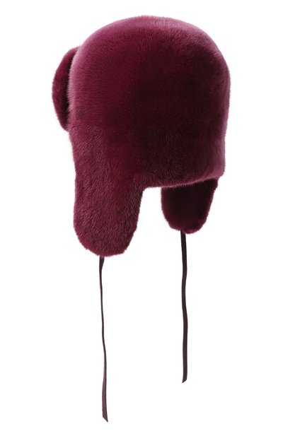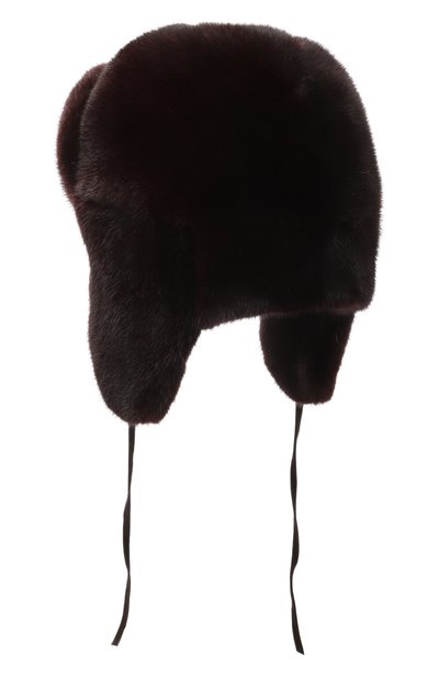 Шапку-ушанку «Френки» с загнутым наверх козырьком выполнили из крашеного меха норки. Модель с фирменным гофрированным подкладом дополнили кожаными завязками.