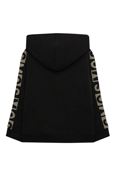 Для пошива толстовки с принтом Doggy Mate использовали трикотаж на основе органического хлопка. Модель с капюшоном и внутренней отделкой из флиса застегивается молнией.