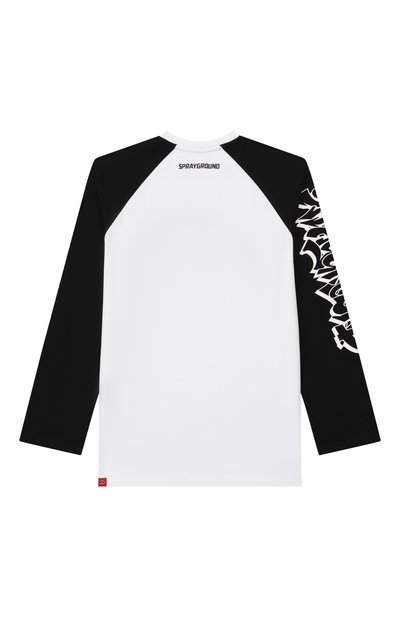 Лонгслив с контрастными рукавами реглан выполнили из джерси на основе органического хлопка. Спереди модель декорировали надписями.