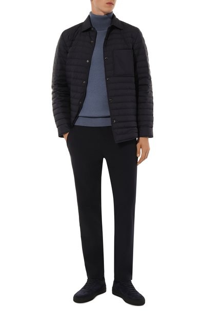 Брюки Marcus выполнили из стрейчевого текстиля на основе полиэстера и вискозы с добавлением шерсти. Модель с двумя парами карманов дополнили эластичным поясом с внутренней кулиской.