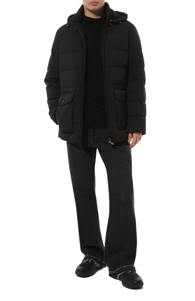 Пуховик Yaron сшили из влагоотталкивающего полиамида и утеплили утиным пухом с добавлением переработанного технического волокна. Помимо боковых карманов с клапанами предусмотрели еще два: внутри и на левом рукаве, украшенном брендированным патчем. Модель с воротником-стойкой, регулируемым капюшоном, трикотажными манжетами и скрытыми плечевыми ремнями застегивается встречной молнией.