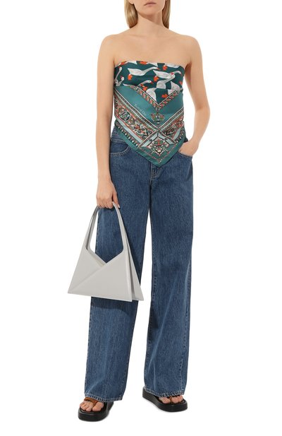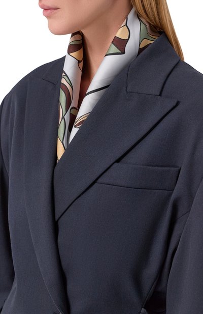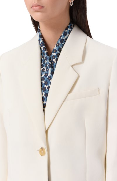 Квадратный платок с цветочным принтом выполнили из шелкового твила. Края аксессуара с логотипом в углу подшили вручную в технике hand-rolled.