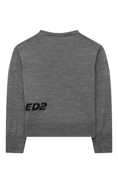 Свободный свитер связали из микса шерсти и кашемира. Модель с рукавами реглан украсили брендированной нашивкой сзади, а рифленые манжеты и пояс – контрастными полосами.