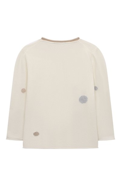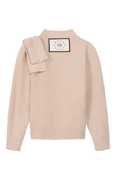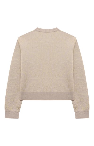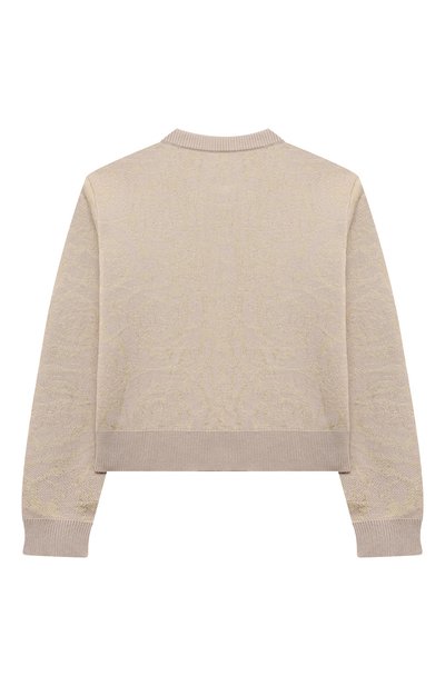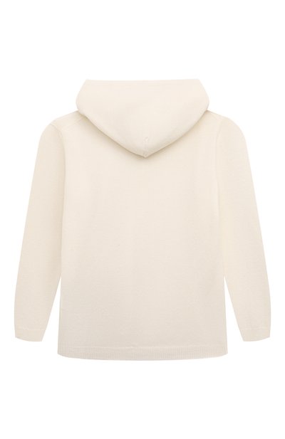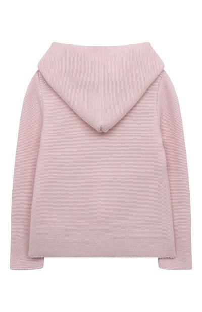 Двубортный кардиган со спущенной линией плеч и парой карманов с клапанами связали из шерсти первого пострига, укрепленной полиамидом. Модель со складкой на спинке застегивается брендированными пуговицами.