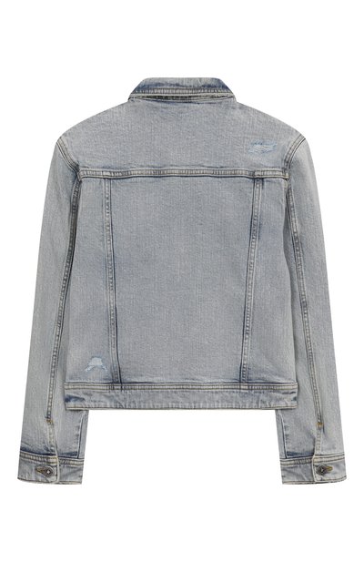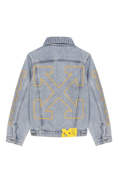 Куртку с паттерном выполнили из хлопкового денима, а для изготовления подкладки использовали полиэстер. Модель с тремя карманами застегивается брендированными пуговицами в тон.