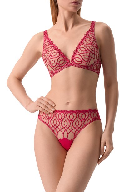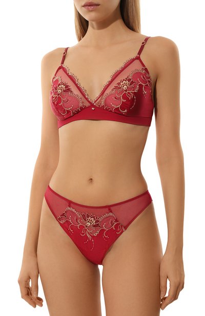 Для изготовления трусов из коллекции Giverny использовали тонкий эластичный полиамид и полупрозрачный тюль. Спереди модель с хлопковой ластовицей декорировали фактурной вышивкой в тон.