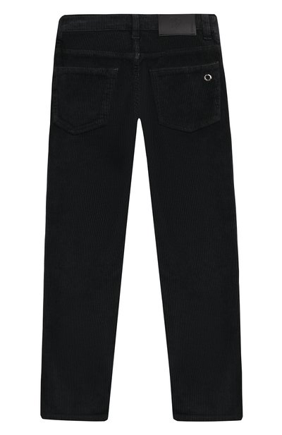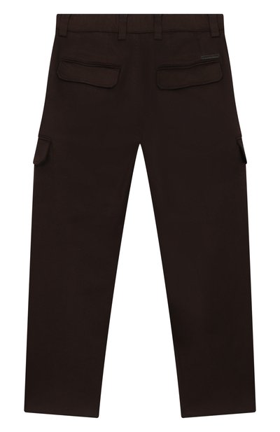 Брюки с вискозным подкладом и узкими отворотами выполнили из шерсти с мотивом пейсли. Модель с четырьмя карманами украсили вышитой эмблемой марки.