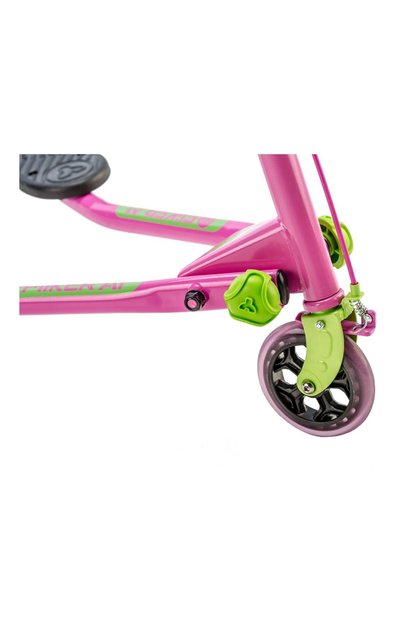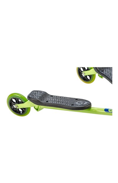 Самокат Lean 'n Glide с управлением наклоном, алюминиевым тормозом заднего колеса и платформой с большим пространством для ног создан для первых самостоятельных поездок детей от 1,5 до 6 лет (весом до 50 кг). Транспортное средство со светящимися колесами оснащено регулируемым рулем с тремя уровнями высоты. Сборка осуществляется быстро и без инструментов – достаточно соединить рукоятку с основани ем.