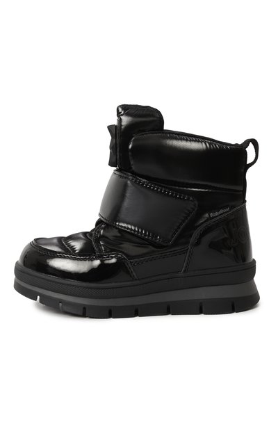 Утепленные шерстью сапоги с ремешком велкро на голенище скомбинировали из текстиля с водоотталкивающей мембраной Biometex и искусственной кожи. Модель с 3D-эмблемой на язычке установили на массивную подошву Sector с протектором.