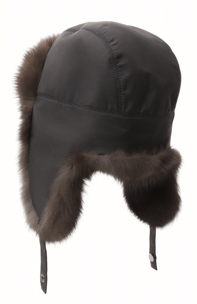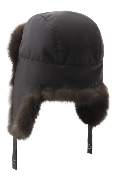 Шапку-ушанку Modern из плащевой ткани утеплили мехом соболя. Благодаря ремешкам с кнопками наушники можно зафиксировать под подбородком или на затылке.