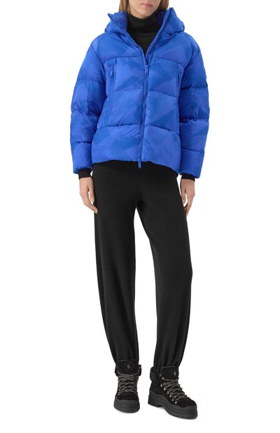 Стеганую куртку Vally на утином пуху выполнили из влагоотталкивающего нейлона с графичным принтом. Модель с регулируемым капюшоном и эластичными манжетами дополнили внутренним и двумя боковыми карманами. В комплекте – съемные лямки.