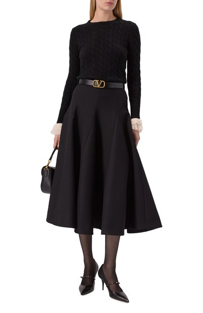 Свитер Ingrid из чистого кашемира украсили контрастным геометричным орнаментом. Высокую горловину дополнили отворотом, а над эластичным поясом разместили металлическую эмблему B-signe.