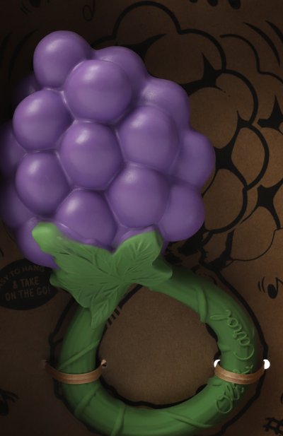 Каталку Emma the Eggplant с деревянными колесами выполнили из натурального каучука. Игрушку, покрытую пищевыми красителями, можно использовать как прорезыватель. В комплекте – раскладная картонная дорога.