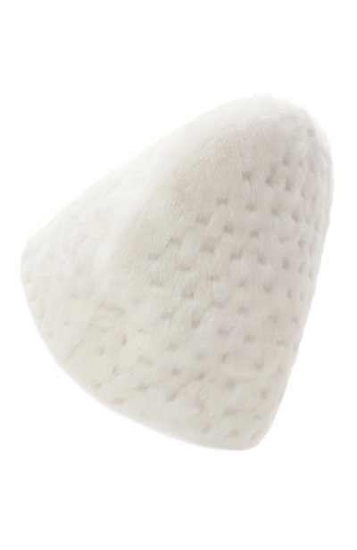 Шапку-кубанку выполнили из меха белоснежной норки, обработанной под бархат. Аксессуар дополнили подкладом из атласа на основе вискозы.