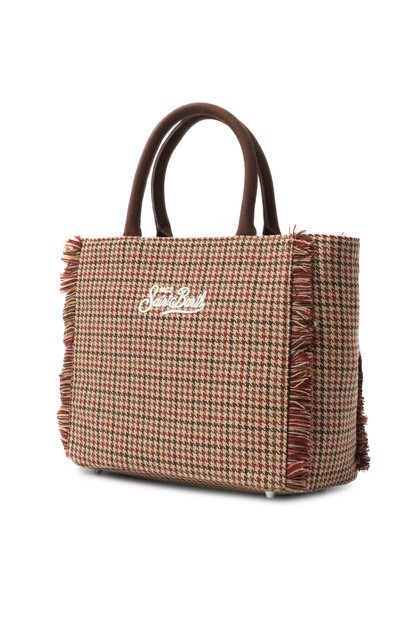 Сумку с короткой ручкой и съемным брендированным ремнем изготовили из текстиля с металлизированным покрытием. Заднюю панель украсили логотипом марки, а от кидной клапан с магнитными кнопками – изображением кошки Шупетт.