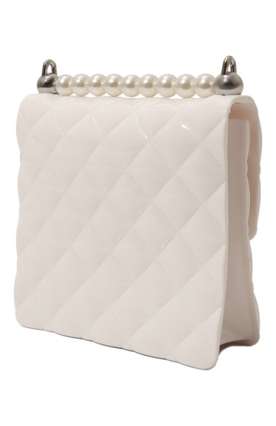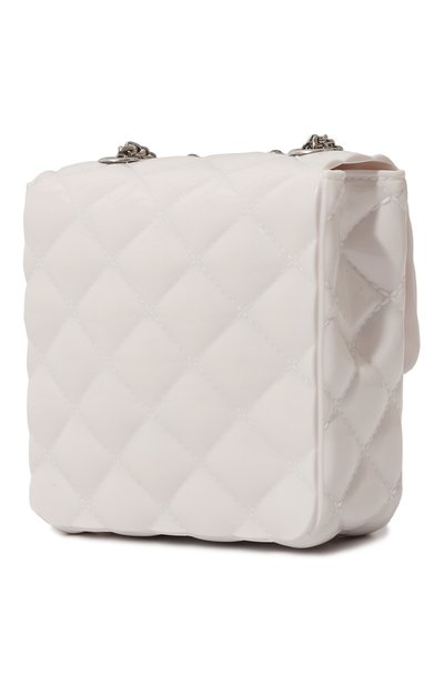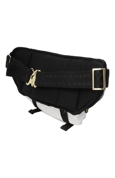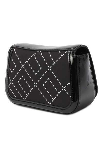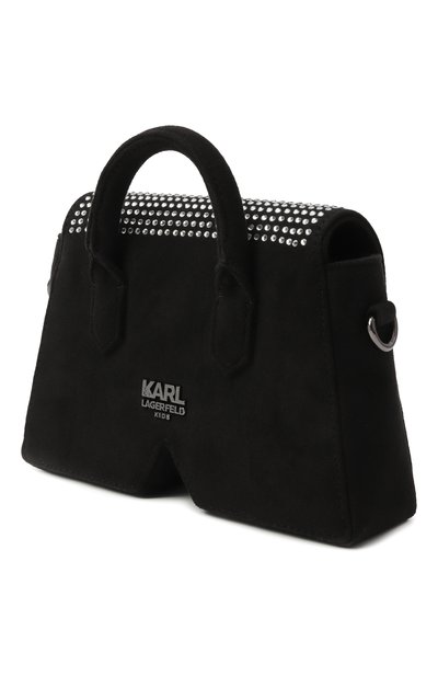 Сумку с регулируемым плечевым ремнем выполнили из напоминающего кожу материала. Модель на молнии дополнили накладкой в виде кошки Шупетт в очках, полностью покрытой стразами.