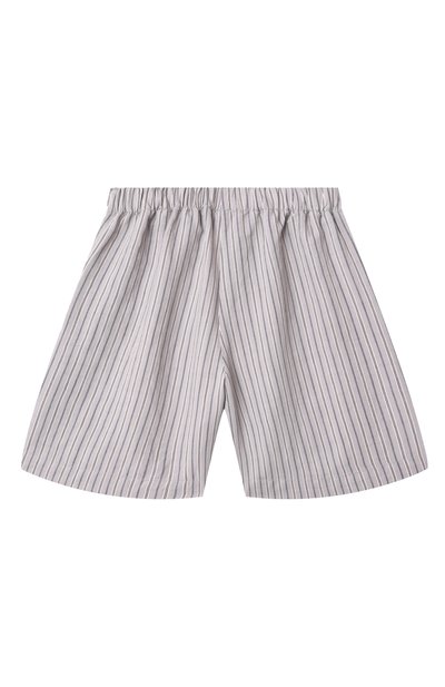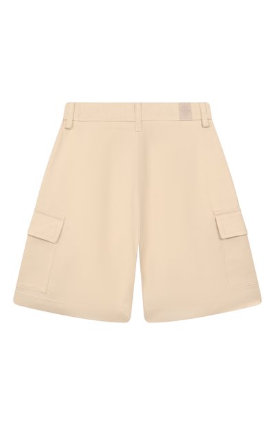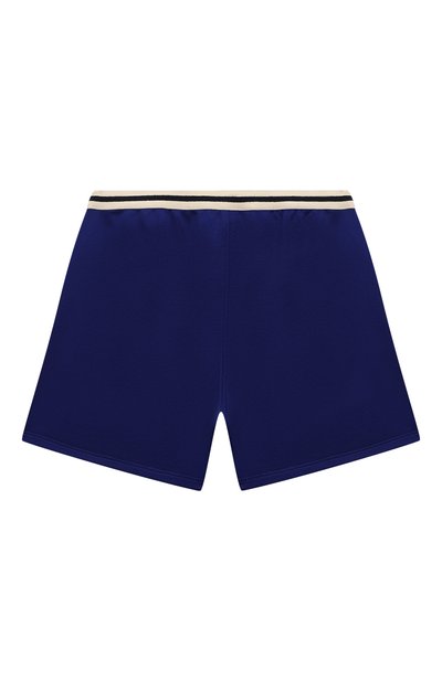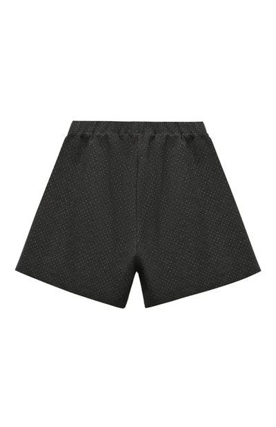 Шорты с двумя боковыми карманами выполнили из микса полиэстера и хлопка с жаккардовым шевронным узором, подчеркнутым стразами. Модель с широким брендированным поясом украсили фирменной пластиной на левой брючине.