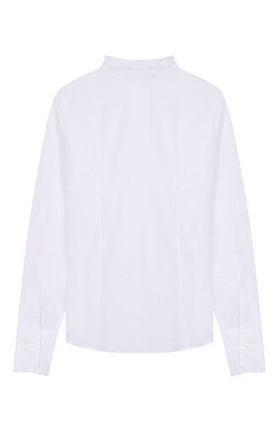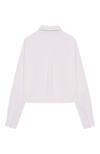 Рубашку с фигурным низом и прямоугольными манжетами сшили из хлопка. Модель дополнили вшитым поясом из контрастной стрейчевой ленты с жаккардовым логотипом.