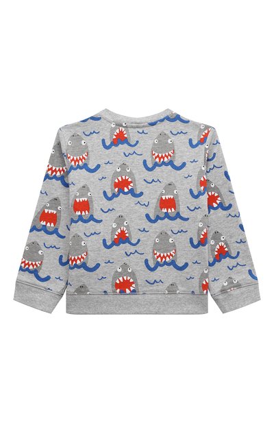 Свитшот с отделкой в рубчик выполнили из хлопкового трикотажа с принтом Ikon Karl. Спинку модели дополнили планкой с двумя кнопками.