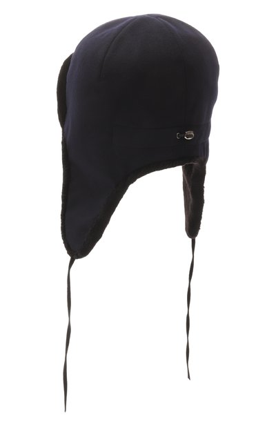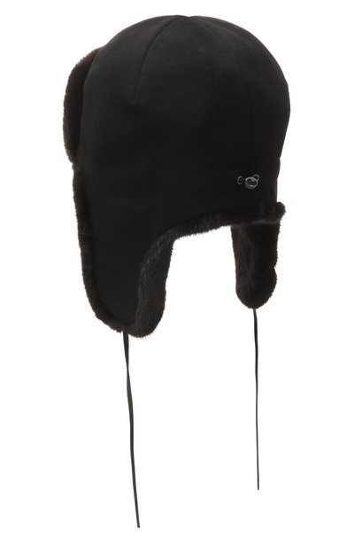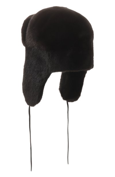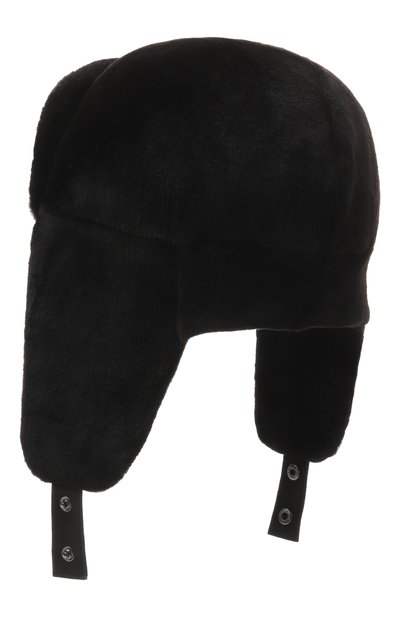 Шапку-ушанку выполнили из стриженого меха норки. Из такого же длинноворсового материала изготовили внутреннюю отделку и отворот. Наушники застегиваются кожаными ремешк ами с кнопками.