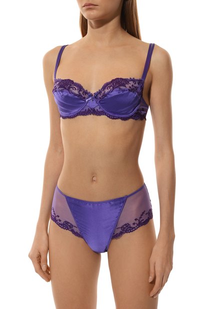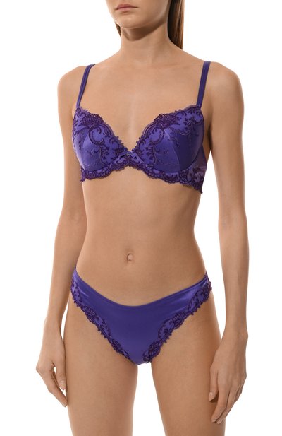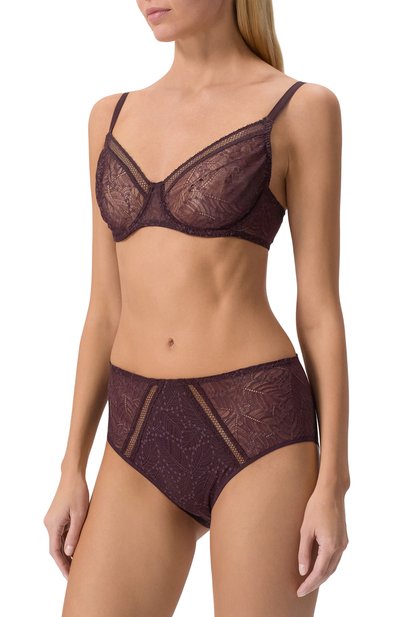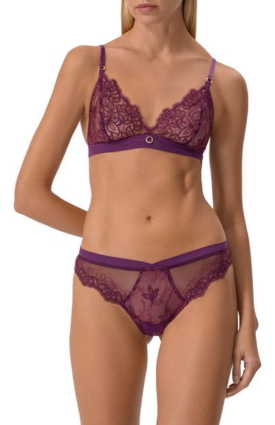 Бюстгальтер-балконет вошел в коллекцию Elegance Artist. Модель с мягкими чашечками на косточках выполнена из эластичной сетки и ажурного кружева с цветочными мотивами. Регулируемые бретели и перемычка украшены золотистыми кольцами, инкрустированными кристаллами.