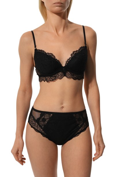 В коллекцию Sublime En Or вошел бюстгальтер с чашечками пуш-ап на косточках. Модель с регулируемыми бретелями выполнили из стрейчевого нейлонового кружева Leavers с ламинированной вышивкой. Перемычку украсили кристаллами.