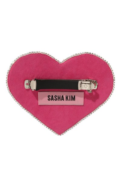 Бант с за жимом-автоматом в силиконовом чехле выполнили из полиэстерового атласа. Перемычку аксессуара, усыпанного кристаллами, декорировали каскадной цепочкой.