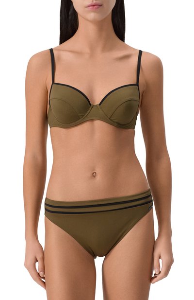 Бра-бандо со съемной регулируемой монобретелью выполнили из эластичной нейлоновой микрофибры. Модель с V-образным вырезом между драпированными чашечками застегивается замком-защелкой сзади.