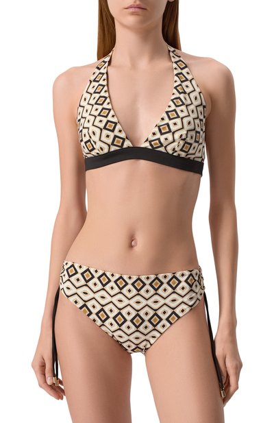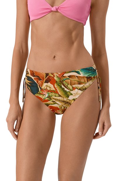 Плавки с разноцветным принтом Florence одинаково хорошо сочетаются и с парным, и с однотонным бра. Модель с плоскими краями выполнили из стрейчевой нейлоновой микрофибры.
