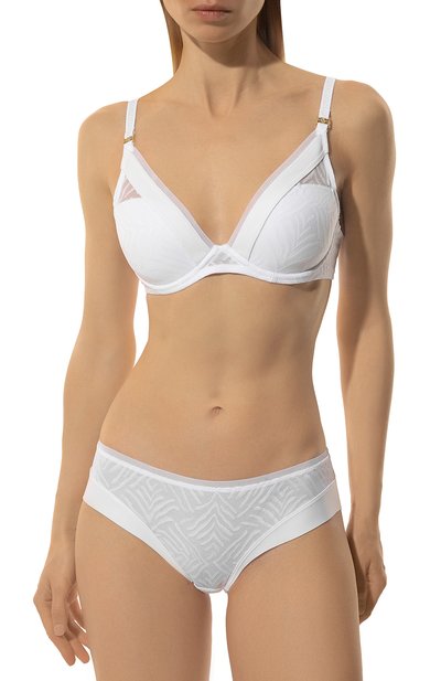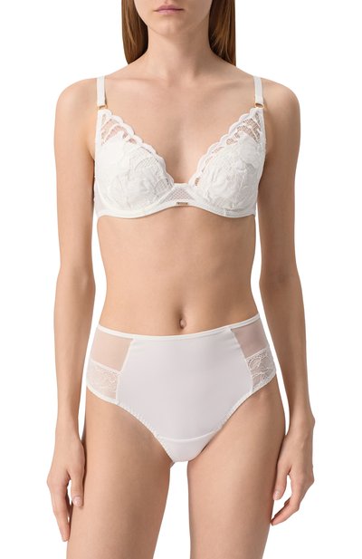 Для создания слипов из коллекции Moments использовали эластичное французское кружево Textronic. Заднюю часть изделия сшили из хлопка с добавлением стрейчевых нитей, подчеркнув края фестончатым кантом.