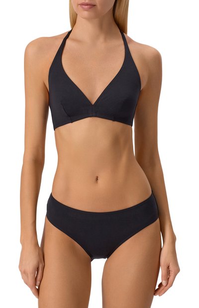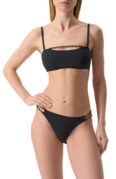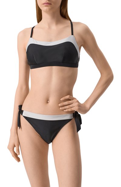 Бра-топ Holly выполнили из полиамида. Бретели, огибающие шею и завязывающиеся на талии, дополнили трубчатыми вставками, которым вторят эглеты на концах.