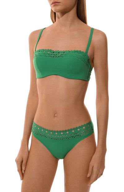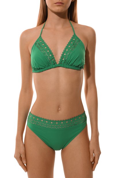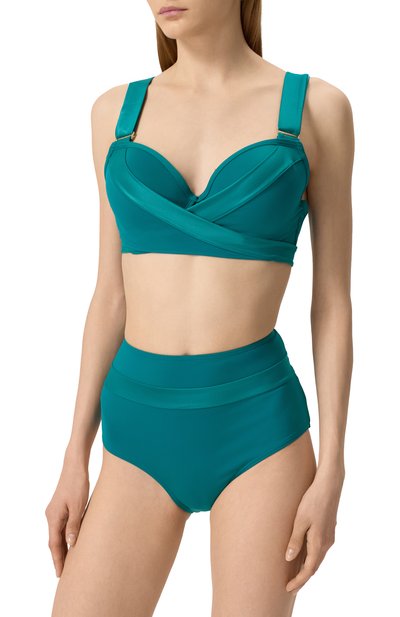 Бра-топ Lynwood с замком-защелкой сзади выполнили из нейлоновой микрофибры оттенка Deep Garden. Пояс, бретели и края треугольных чашечек без косточек украсили перфорированным узором.