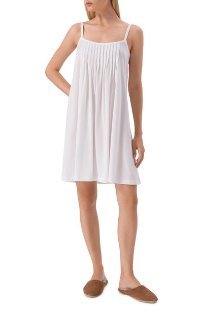 Сорочка из мерсеризованного хлопкового джерси вошла в коллекцию Cotton Silk. Для изготовления регулируемых бретелей и канта использовали шелковый атлас.
