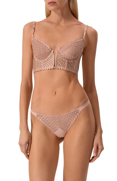 Стринги Blue Monday с рельефными термоспаянными швами выполнили из полупрозрачного стрейчевого тюля. Плоский пояс украсили жаккардовым логотипом.