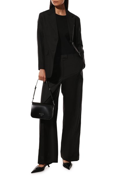 Брюки со стрелками и боковыми карманами выполнили из хлопкового бархата. Модель составит гармоничный дуэт с парным жакетом.