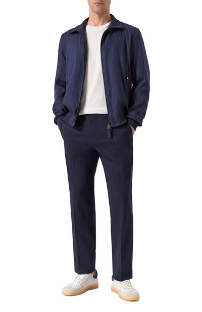 Брюки Jean с простроченными стрелками выполнили из микса хлопка и полиэстера. Модель с эластичным поясом-кулиской дополнили задним и парой боковых карманов.