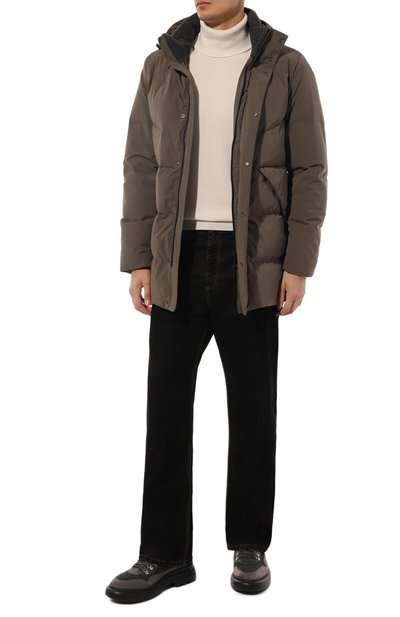 Стеганую куртку Jones на утином пуху выполнили из влагоотталкивающего полиамида. Модель с регулируемыми кулисками на капюшоне и по низу, а также разрезом с кнопками сзади и эластичными манжетами дополнили боковыми и нарукавным карманами с молниями и еще парой внутренних.