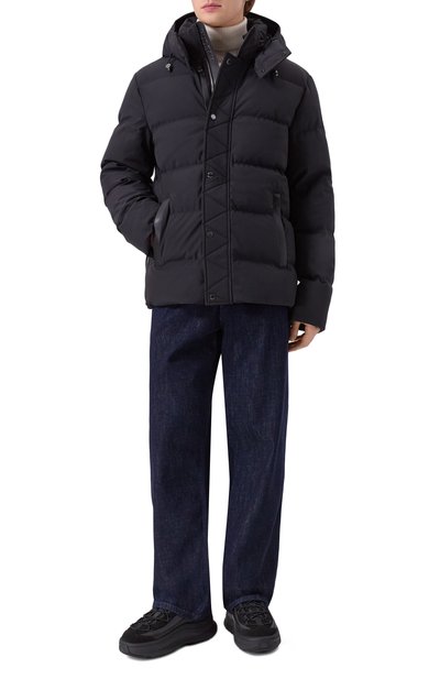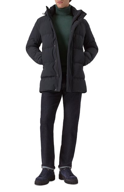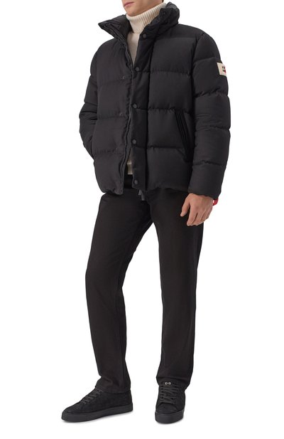 Стеганую куртку Jones на утином пуху выполнили из влагоотталкивающего полиамида. Модель с регулируемыми кулисками на капюшоне и по низу, а также разрезом с кнопками сзади и эластичными манжетами дополнили боковыми и нарукавным карманами с молниями и еще парой внутренних.