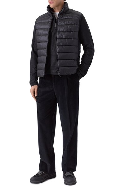 Стеганый жилет Homer на переработанном утеплителе Thermore® Ecodown® выполнили из нейлона с влагоотталкивающей пропиткой. Модель с эластичными брендированными вставками по бокам и патчем с логотипом на спинке дополнили боковыми карманами с молниями и парой внутренних.